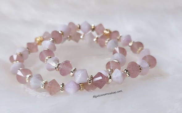 Bracelet "Murmures de l'âme" en Kunzite & Quartz fraise