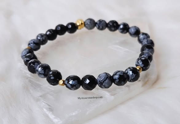 Bracelet Femme en Obsidienne flocon de neige